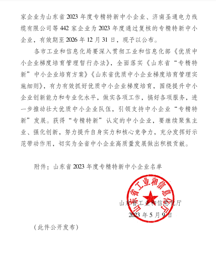 2023年5月9日,山東省工業(yè)和信息化廳公布了《關(guān)于2023山東省“專精特新”中小企業(yè)名單的通知》,經(jīng)企業(yè)申報、市區(qū)審核推薦、專家評審等程序,淄博奧固特科技有限公司憑借優(yōu)越的綜合管理策略和高效創(chuàng)新能力,成功獲評山東省“專精特新”中小企業(yè)稱號。